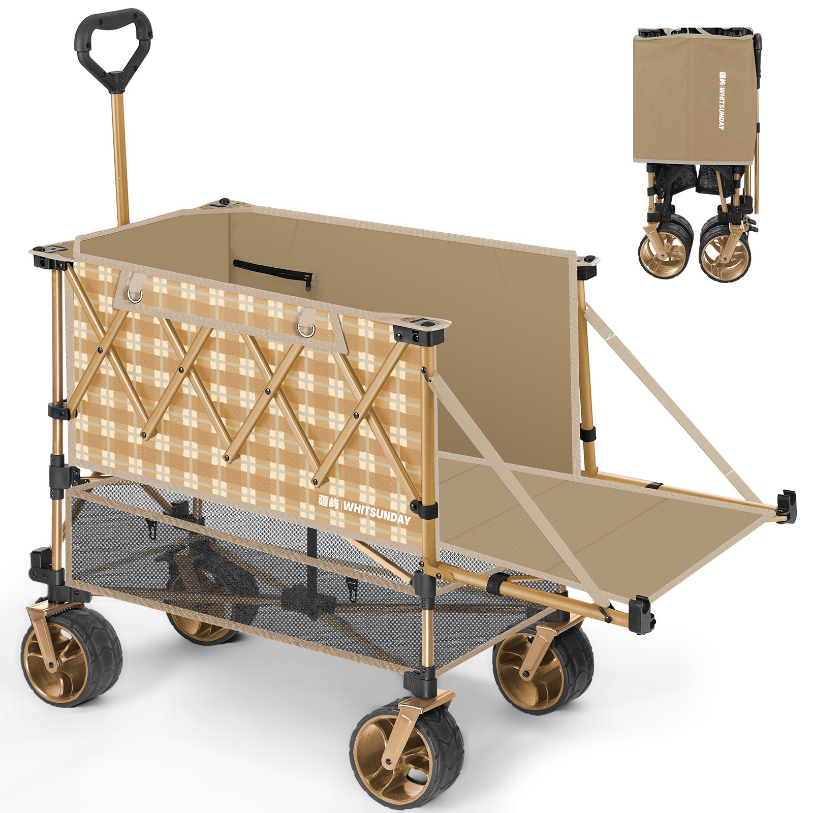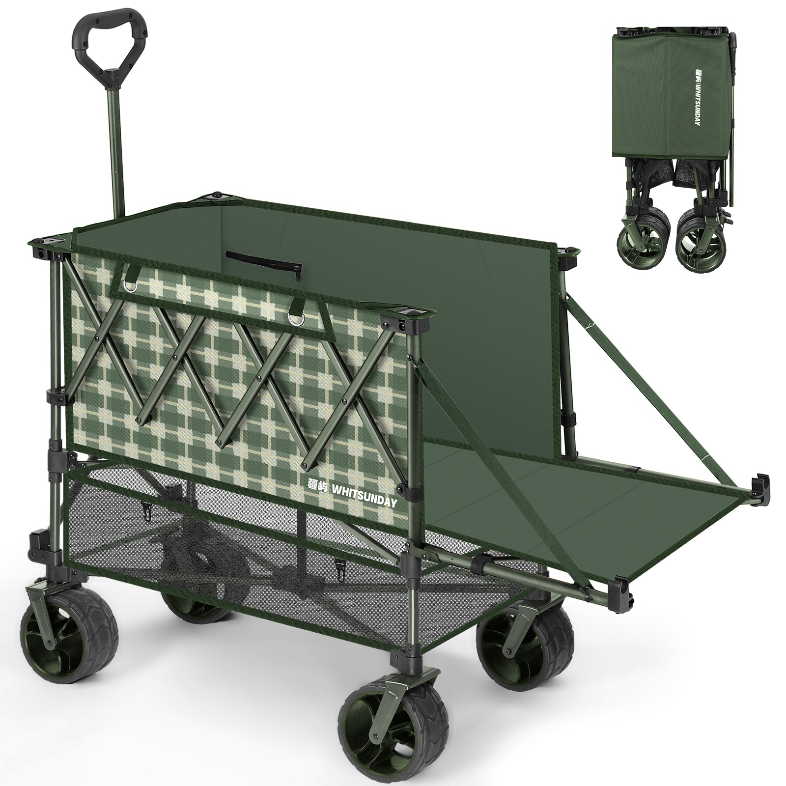 Folding Wagon:Whitsunday Wagon designed this heavy-duty foldable utility wagon to handle any terrain with ease. With wide all-terrain wheels and 360° rotating front casters, our wagon lets you maneuver smoothly—whether you're going fishing, camping, tailgating, attending sports events, grocery shopping, or working in the garden.